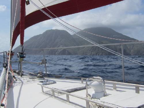 Tolle Landschaft hier! Wie gern würden wir über die Insel kraxeln! Ist eigentlich nur das Problem des Anlandens. Einklariert haben wir aber auch noch nicht ... und der Wetterbericht sagt schon wieder “BÄH” an ... Abbruch Projekt “Saba”! Leinen los und ab nach Hause!